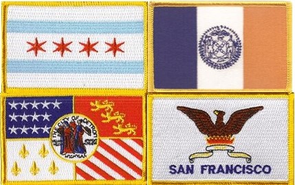City flag patches are embroidered and measure 3.5" X 2.25". Each patch can be ironed on or sewn on.