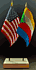 Elevate your workspace with our Comoros and American miniature flag desk set! These silk-like rayon flags, measuring 4x6 inch and are attached to a 10 inch black plastic staff and finished with a gold spear top. Perfect for office, classroom, or table decor. Each set comes with a 4 inch long white flag stand for added display options.