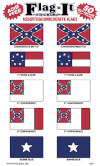 Assorted Confederate Stickers - 50 per packageEach package contains 50 assorted self-adhesive flag stickers. Each sticker measures 1" x 1 1/2". Included are the Confederаte Battle Flag, 1st Stars & Bars Flag, 2nd Confederаte Flag, 3rd Confederаte Flag, Bonnie Blue Flag. Plus an explanation about each flag and the dates they were flown.