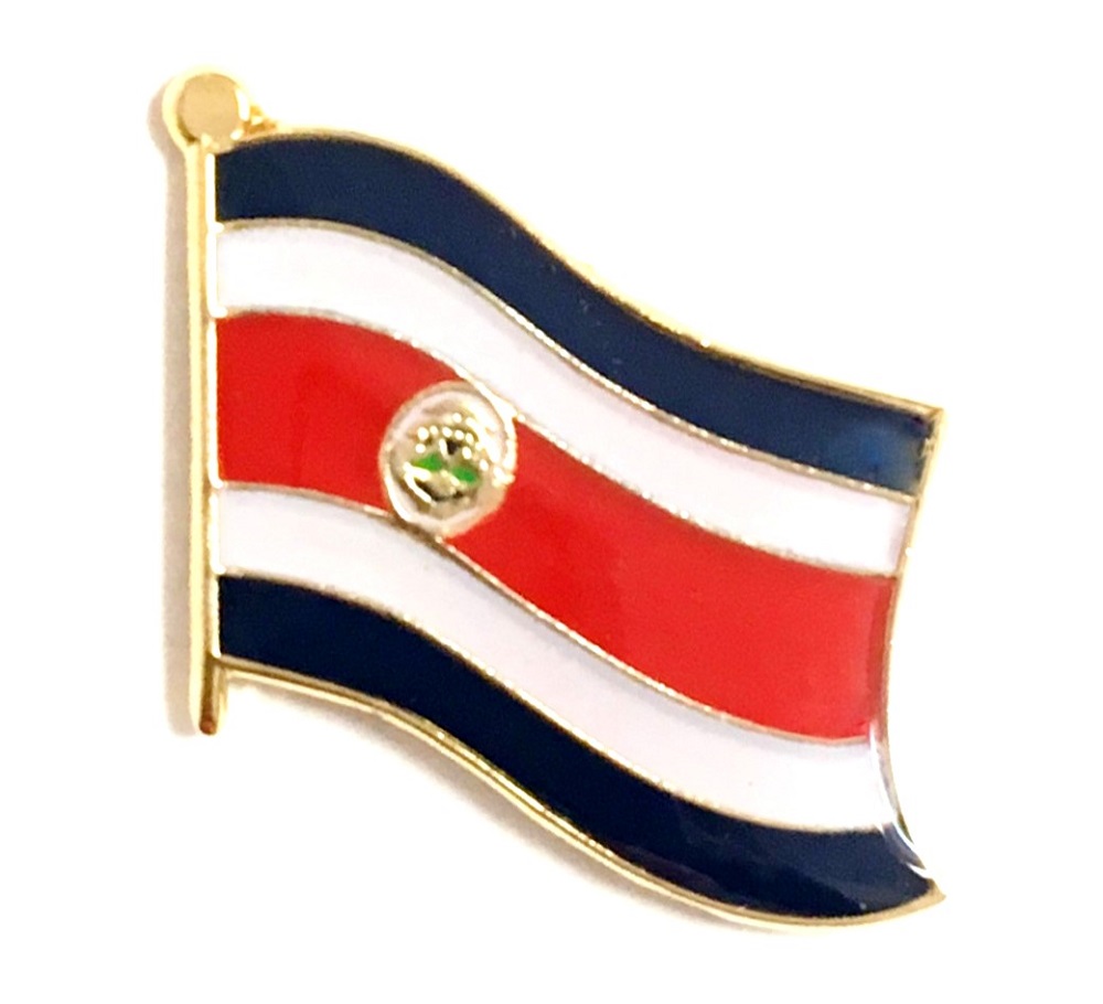 Costa Rica .flag pin measures approximately 1 inch; x 3/4 inch; or 24 mm x 16 mm and has an all metal lacquered design with clutch pin.