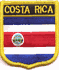 Costa Rica flag shield patches are fully embroidered and measure 2.25″ x 2.5″. Each patch is trimmed in gold and can be ironed or sewn on.