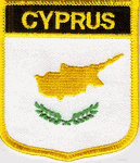 Cyprus flag shield patches are fully embroidered and measure 2 1/2" x 2 1/2".