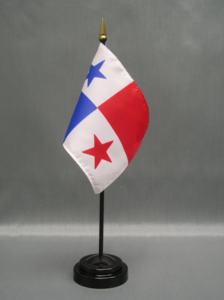 These miniature Panama 4x6 inch; stick flags are beautifully printed on silk-like material. Each flag is carefully hem-stitched on all 4 sides for longer lasting beauty. They are attached to a 10 inch; black plastic staff with a gold spear making these international flags perfect for desktop or tabletop displays.