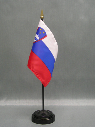 These miniature Slovenia 4x6 inch; stick flags are beautifully printed on silk-like material. Each flag is carefully hem-stitched on all 4 sides for longer lasting beauty. They are attached to a 10 inch; black plastic staff with a gold spear making these international flags perfect for desktop or tabletop displays.