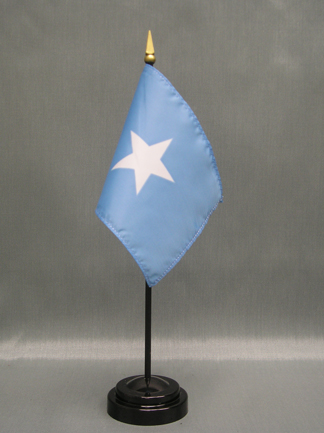 These miniature Somalia 4x6 inch; stick flags are beautifully printed on silk-like material. Each flag is carefully hem-stitched on all 4 sides for longer lasting beauty. They are attached to a 10 inch; black plastic staff with a gold spear making these international flags perfect for desktop or tabletop displays.