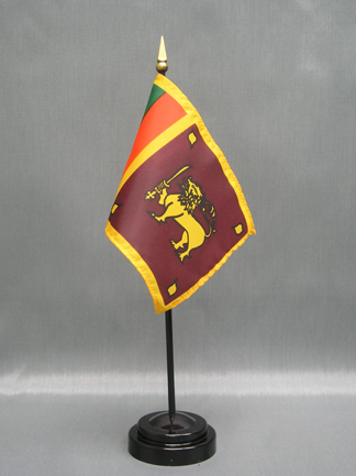 These miniature Sri Lanka 4x6 inch; stick flags are beautifully printed on silk-like material. Each flag is carefully hem-stitched on all 4 sides for longer lasting beauty. They are attached to a 10 inch; black plastic staff with a gold spear making these international flags perfect for desktop or tabletop displays.