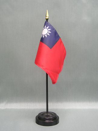 These miniature Taiwan 4x6 inch; stick flags are beautifully printed on silk-like material. Each flag is carefully hem-stitched on all 4 sides for longer lasting beauty. They are attached to a 10 inch; black plastic staff with a gold spear making these international flags perfect for desktop or tabletop displays.