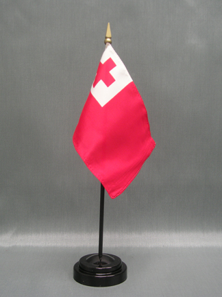 These miniature Tonga 4x6 inch; stick flags are beautifully printed on silk-like material. Each flag is carefully hem-stitched on all 4 sides for longer lasting beauty. They are attached to a 10 inch; black plastic staff with a gold spear making these international flags perfect for desktop or tabletop displays.