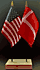 Elevate your workspace with our Denmark and American miniature flag desk set! These silk-like rayon flags, measuring 4x6 inch and are attached to a 10 inch black plastic staff and finished with a gold spear top. Perfect for office, classroom, or table decor. Each set comes with a 4 inch long white flag stand for added display options.