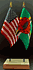 Elevate your workspace with our Dominica and American miniature flag desk set! These silk-like rayon flags, measuring 4x6 inch and are attached to a 10 inch black plastic staff and finished with a gold spear top. Perfect for office, classroom, or table decor. Each set comes with a 4 inch long white flag stand for added display options.