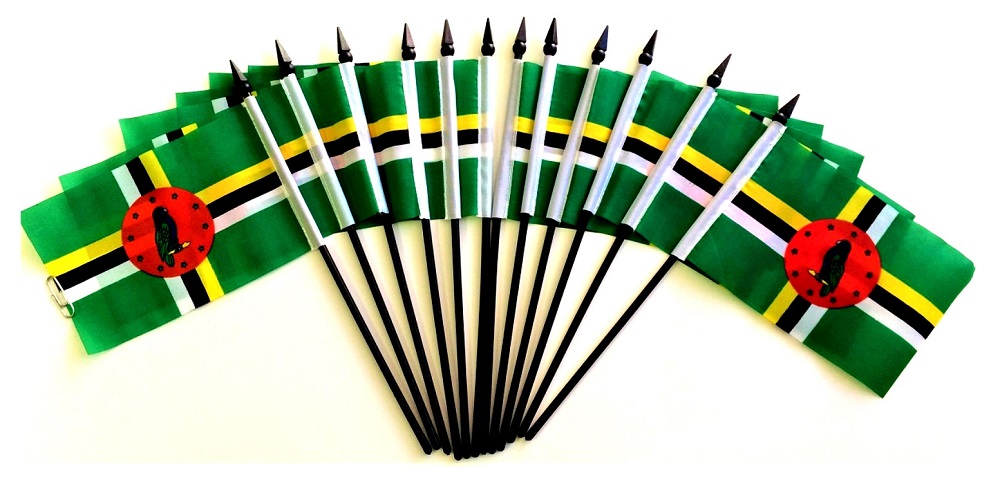 These Dominican polyester table flags are great for special events, parades and party decorations. They are priced less than the top quality rayon desk flags and are sold only in packs of 12 per order unit. Each Dominican miniature flag measures 4″x6″ and is attached with a pole hem to a 10″ black plastic staff with a black spear top.