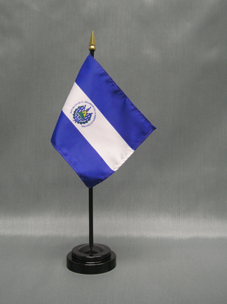 These miniature El Salvador 4x6 inch; stick flags are beautifully printed on silk-like material. Each flag is carefully hem-stitched on all 4 sides for longer lasting beauty. They are attached to a 10 inch; black plastic staff with a gold spear making these international flags perfect for desktop or tabletop displays.