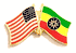 Each Ethiopia flag friendship lapel pin depicts the US flag on the left along with the Ethiopian flag on the right. Each pin measures approximately 1" x 3/4" or 28 mm x 18.3 mm and is the same quality as the single flag lapel pins.