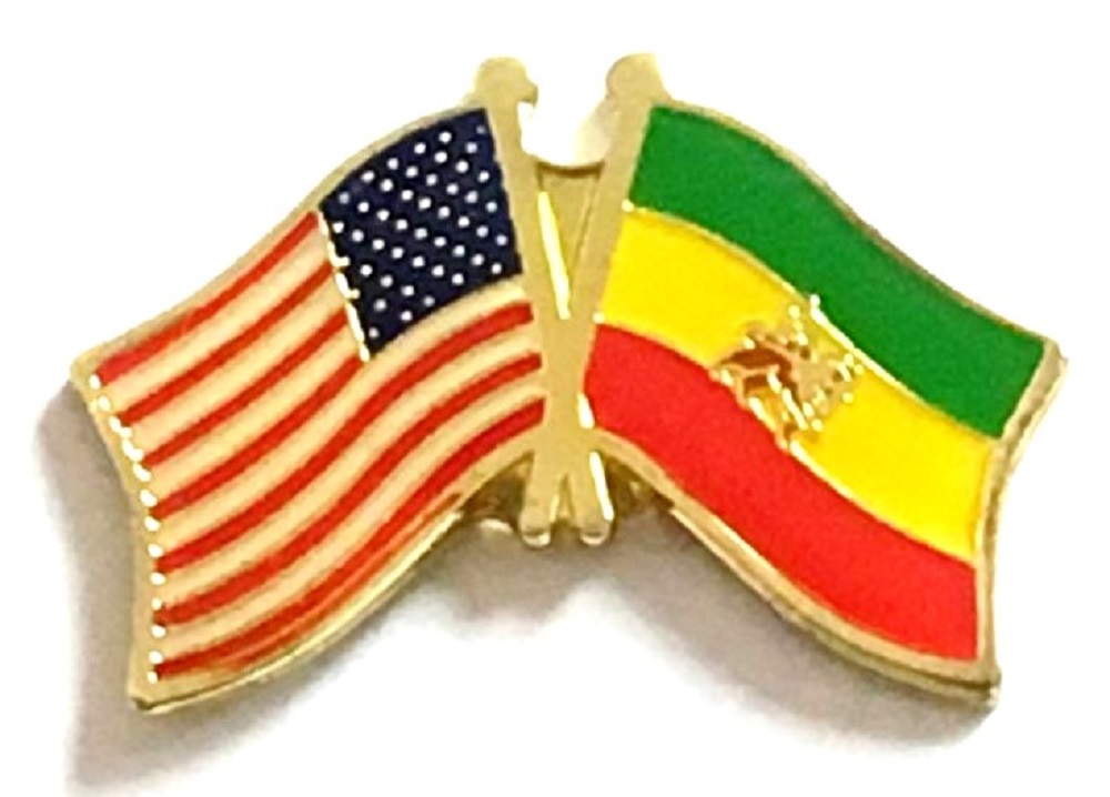 Each Ethiopia w/Lion flag friendship lapel pin depicts the US flag on the left along with the Ethiopia flag on the right. Each pin measures approximately 1" x 3/4" or 28 mm x 18.3 mm and is the same quality as the single flag lapel pins.