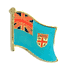 Fiji flag pin measures approximately 1 inch; x 3/4 inch; or 24 mm x 16 mm and has an all metal lacquered design with clutch pin.