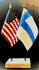 Elevate your workspace with our Finland and American miniature flag desk set! These silk-like rayon flags, measuring 4x6 inch and are attached to a 10 inch black plastic staff and finished with a gold spear top. Perfect for office, classroom, or table decor. Each set comes with a 4 inch long white flag stand for added display options.