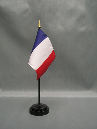 These miniature France 4x6 inch; stick flags are beautifully printed on silk-like material. Each flag is carefully hem-stitched on all 4 sides for longer lasting beauty. They are attached to a 10 inch; black plastic staff with a gold spear making these international flags perfect for desktop or tabletop displays.
