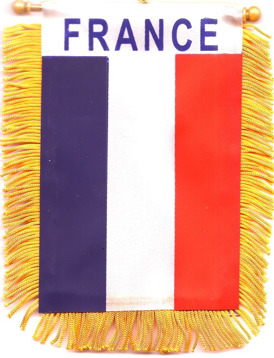 measure 3 1/2" x 5" and are great ways to show your heritage. Each flag has a gold fringe with a string for hanging over your car mirror, and a suction cup.
