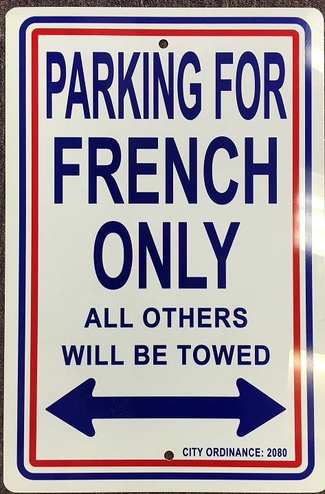 French only parking signs measure 12" x 18" and are made of heavy duty plastic with two mounting holes. These signs make great gifts. Buy 2 or more and save.