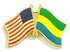 Each Gabon flag friendship lapel pin depicts the US flag on the left along with the Gabon flag on the right. Each pin measures approximately 1" x 3/4" or 28 mm x 18.3 mm and is the same quality as the single flag lapel pins.