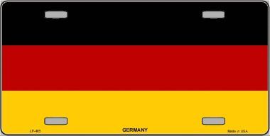 German flag license plates are made of aluminum and measure 6"x12". They are standard sized car license plates with 4 mounting holes.