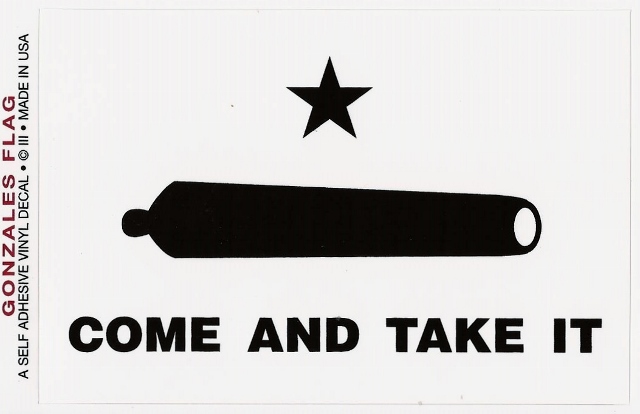These waterproof Gonzales vinyl flag decal stickers are perfect for attaching to your car window, bumper or any flat surface. These Gonzales Come and Take it decals are available in 3 1/2" x 5" and have the adhesive on the back of the decal. Quantity discounts available if you order 6 or more.
