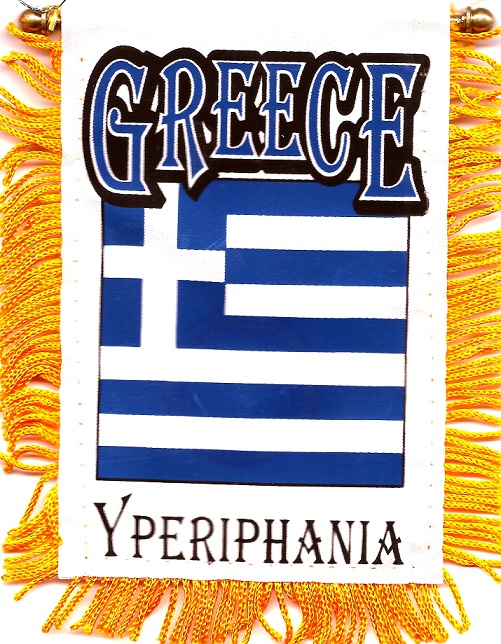 Greece car windshield, window or mirror mini measure 3 1/2 x 5 inches; and are great ways to show your heritage. Each flag has a gold fringe with a string for hanging over your car mirror, and a suction cup to attach the mini flag to your windshield or car window.