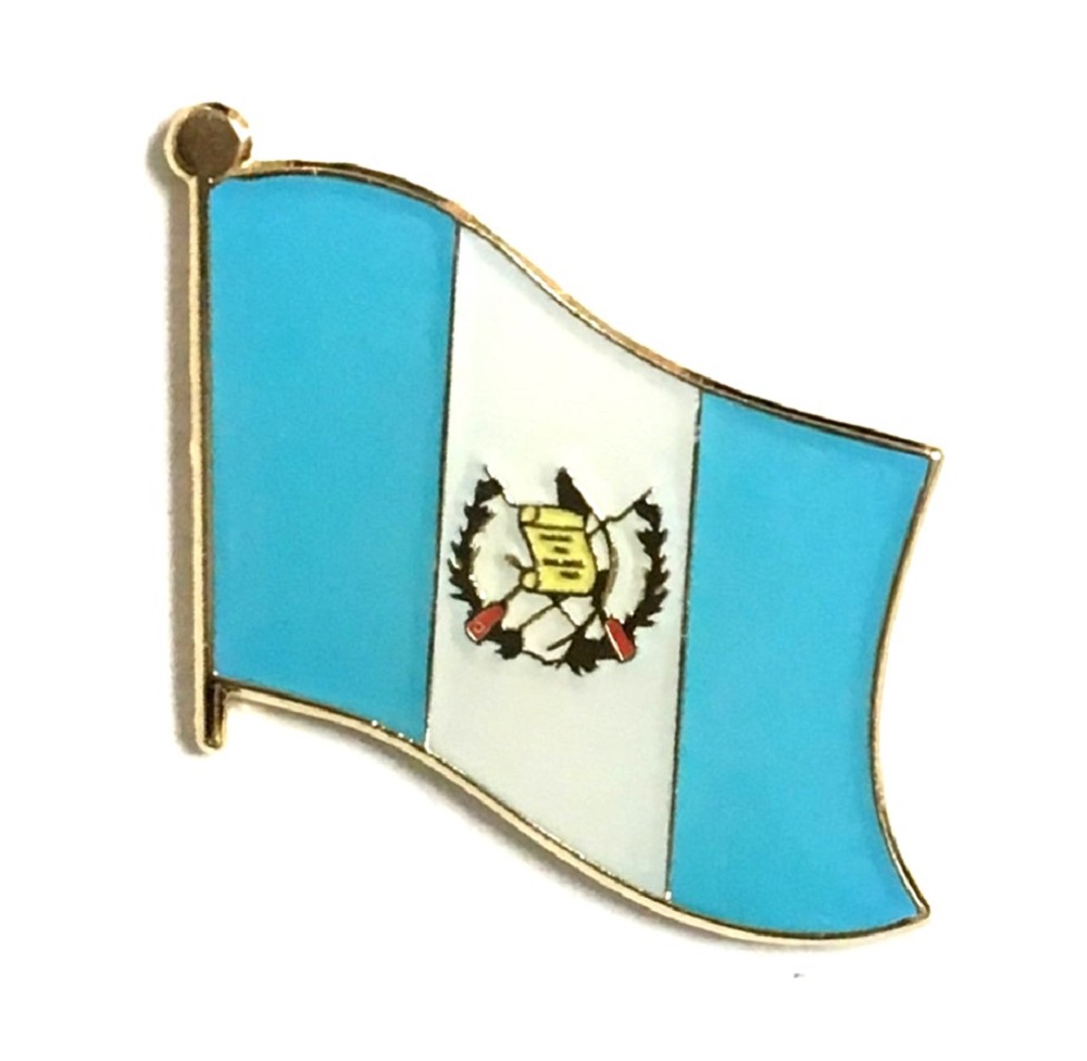 Guatemala flag pin measures approximately 1 inch; x 3/4 inch; or 24 mm x 16 mm and has an all metal lacquered design with clutch pin.