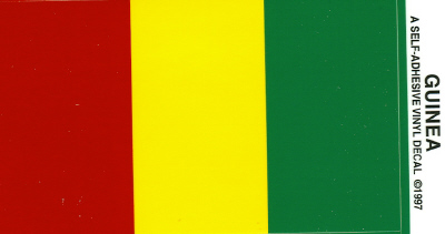 Special closeout sale. Buy 25 or more Guinea vinyl waterproof flag decals and the price is only 40 cents each.