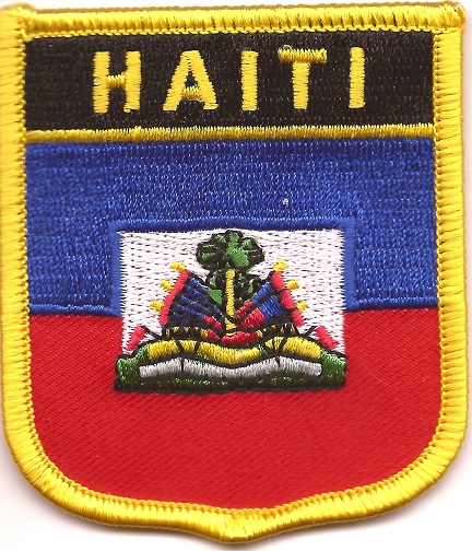 Haitian flag shield patches are fully embroidered and measure 2.25″ x 2.5″. Each patch is trimmed in gold and can be ironed or sewn on.
