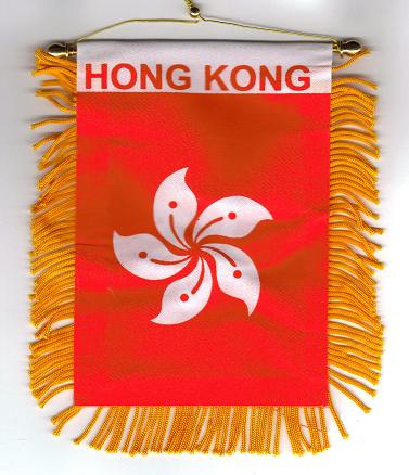 flag has a gold fringe with a string for hanging over your car mirror, and a