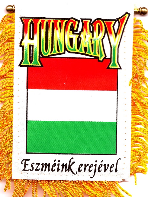 Hungary car windshield, window or mirror mini banner measure 3 1/2 x 5 inches; and are great ways to show your heritage. Each flag has a gold fringe with a string for hanging over your car mirror, and a suction cup to attach the mini flag to your windshield or car window.