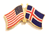 Each Iceland flag friendship lapel pin depicts the US flag on the left along with the Icelandic flag on the right. Each pin measures approximately 1" x 3/4" or 28 mm x 18.3 mm and is the same quality as the single flag lapel pins.