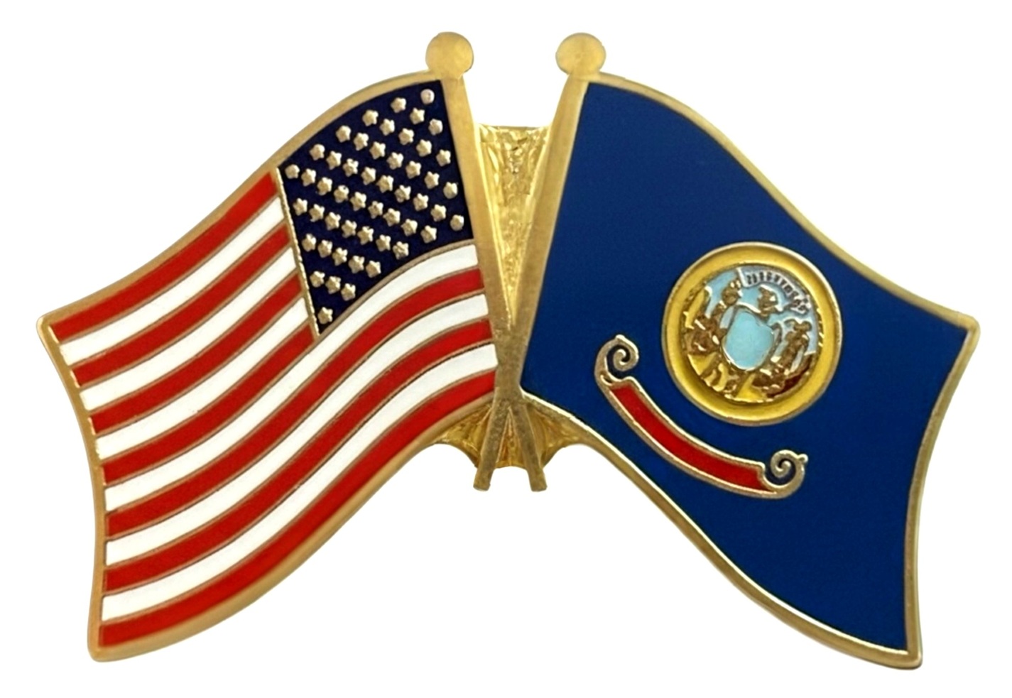 Each Idaho flag friendship lapel pin depicts the US flag on the left along with the Idaho flag on the right. Each pin measures approximately 1" x 3/4" or 28mm x 18.3mm and is the same quality as the single flag lapel pins.