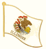 Illinois single flag lapel pins depict one waving flag. Each Illinois flag pin measures approximately 1" x 3/4" or 24 mm x 16 mm and has an all metal lacquered design with clutch pin.