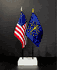 This high quality State and US miniature flag desk set is perfect for office, classroom and table decorations. Flags are made of silk-like rayon, measure 4"x6" and are attached to 10" black plastic staff with a gold spear top. All edges are hem stitched. Flag stand measures 4" long, 2.5" wide and stands .75" high.