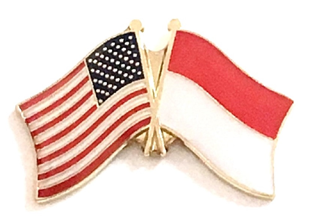 Each Indonesia flag friendship lapel pin depicts the US flag on the left along with the Indonesian flag on the right. Each pin measures approximately 1" x 3/4" or 28 mm x 18.3 mm and is the same quality as the single flag lapel pins.