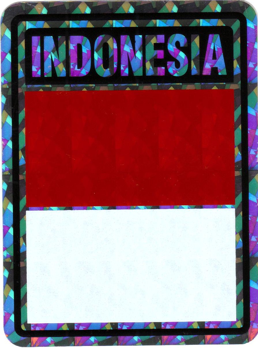 Indonesia prismatic reflective decal stickers are made of waterproof vinyl. Decals measure 3"x4" and can be used outdoors in all weather. Great for attaching to your car, truck or boat. Decorate your home or automobile and show your Indonesian pride.