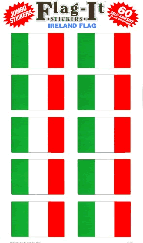 Each package contains 50 self adhesive Irish flag stickers measuring 1"x1 1/2" each. Excellent for school projects and envelope decorations. Sticks to any smooth surface.