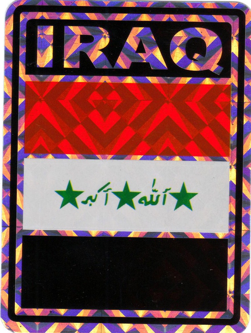 Iraq prismatic reflective decal stickers are made of waterproof vinyl. Decals measure 3"x4" and can be used outdoors in all weather. Great for attaching to your car, truck or boat. Decorate your home or automobile and show your Iraqi pride.