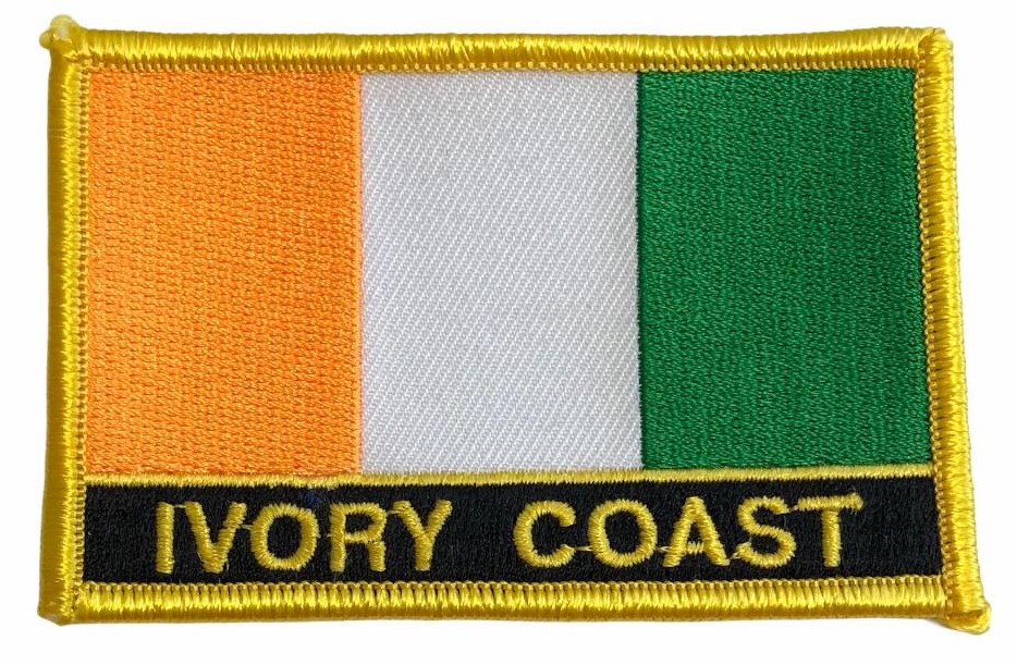 Ivory Coast flag patches are fully embroidered with the name of the country on the patch. Each patch measures 3.25″ x 2.125″. These flag patches are the highest quality world flag patches on the market and can be sewn or ironed on.