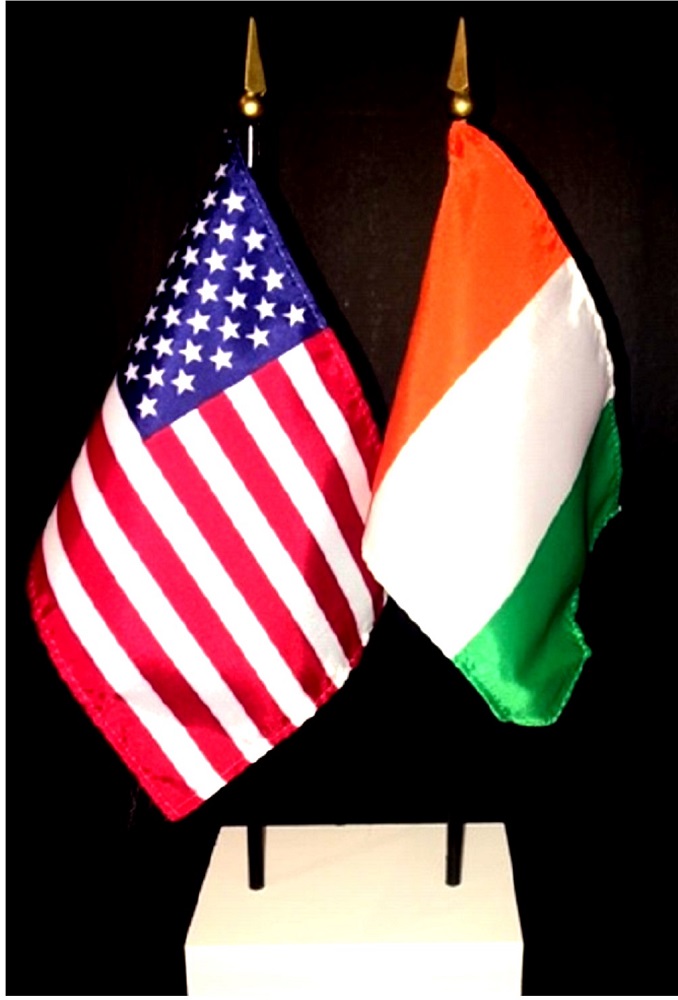 Elevate your workspace with our Ivory Coast and American miniature flag desk set! These silk-like rayon flags, measuring 4x6 inch and are attached to a 10 inch black plastic staff and finished with a gold spear top. Perfect for office, classroom, or table decor. Each set comes with a 4 inch long white flag stand for added display options.