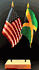 Elevate your workspace with our Jamaica and American miniature flag desk set! These silk-like rayon flags, measuring 4"x6", are attached to a 10" black plastic staff and finished with a gold spear top. Perfect for office, classroom, or table decor. Each set comes with a 4" long white flag stand for added display options.