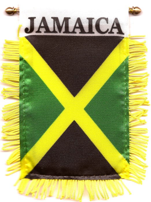 Jamaican car windshield, window or mirror mini measure 3 1/2 x 5 inches; and are great ways to show your heritage. Each flag has a gold fringe with a string for hanging over your car mirror, and a suction cup to attach the mini flag to your windshield or car window.