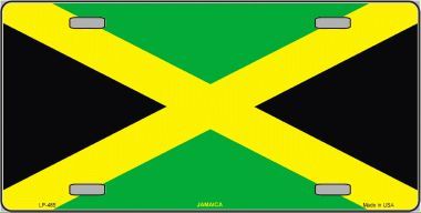 Jamaican flag license plates are made of aluminum and measure 6"x12". They are standard sized car license plates with 4 mounting holes.