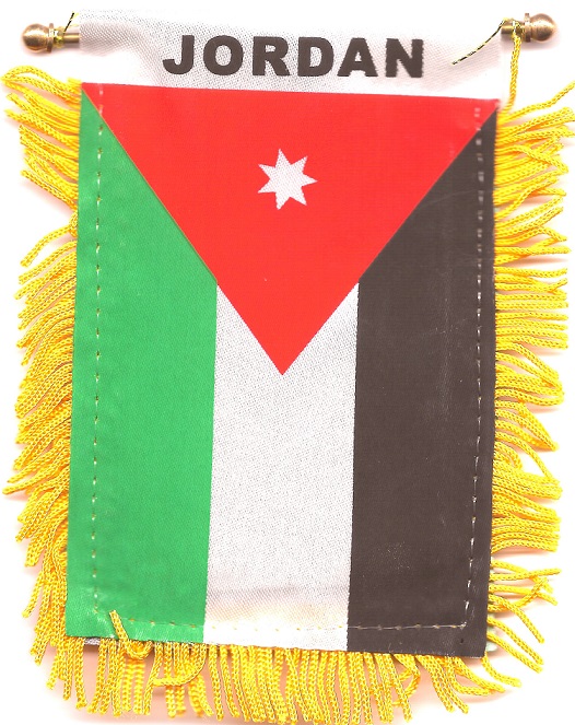 Jordan measure 3 1/2 x 5 inches; and are great ways to show your heritage. Each flag has a gold fringe with a string for hanging over your car mirror, and a suction cup to attach the mini flag to your windshield or car window.