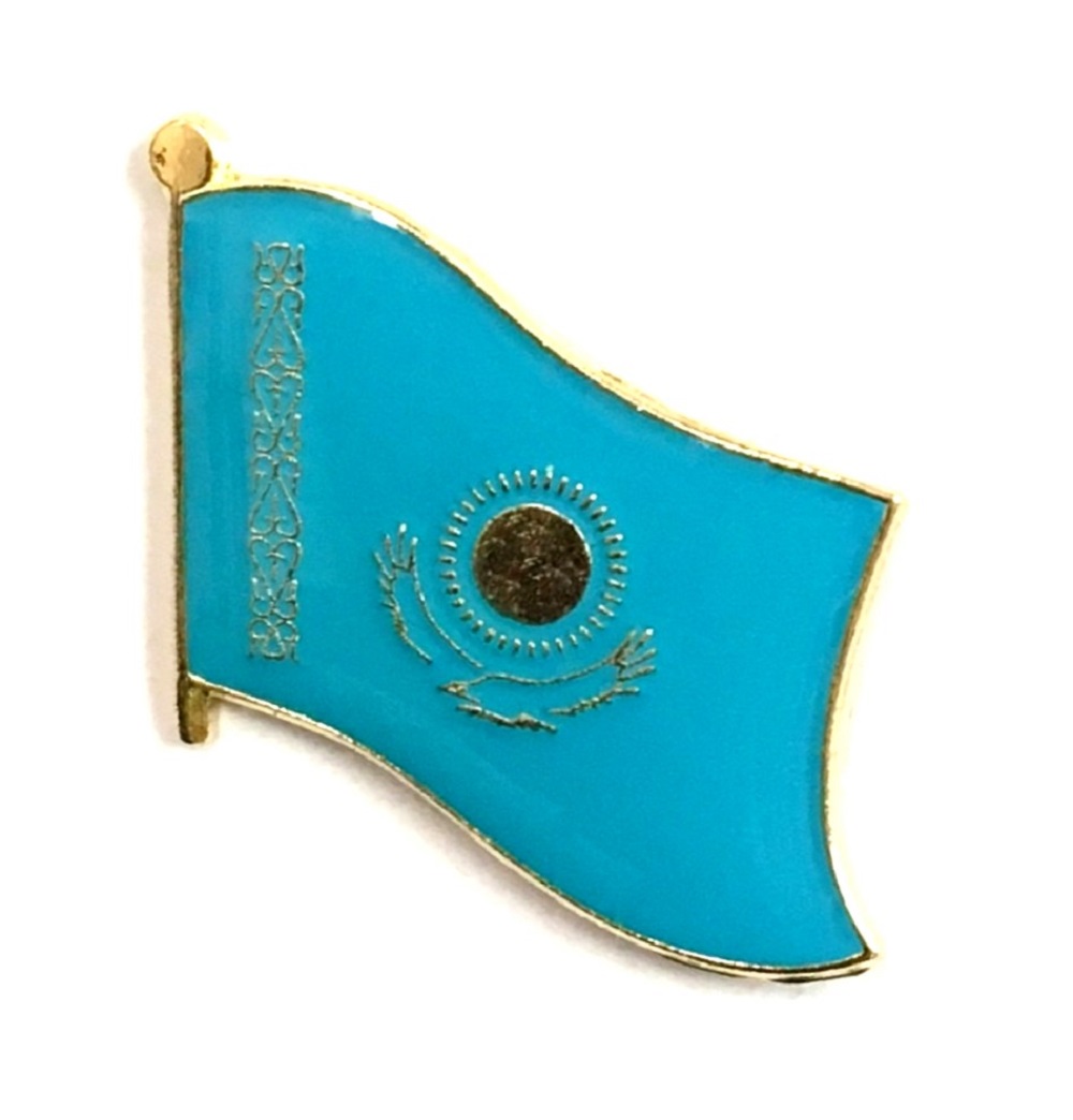Kazakhstan flag pin measures approximately 1 inch; x 3/4 inch; or 24 mm x 16 mm and has an all metal lacquered design with clutch pin.