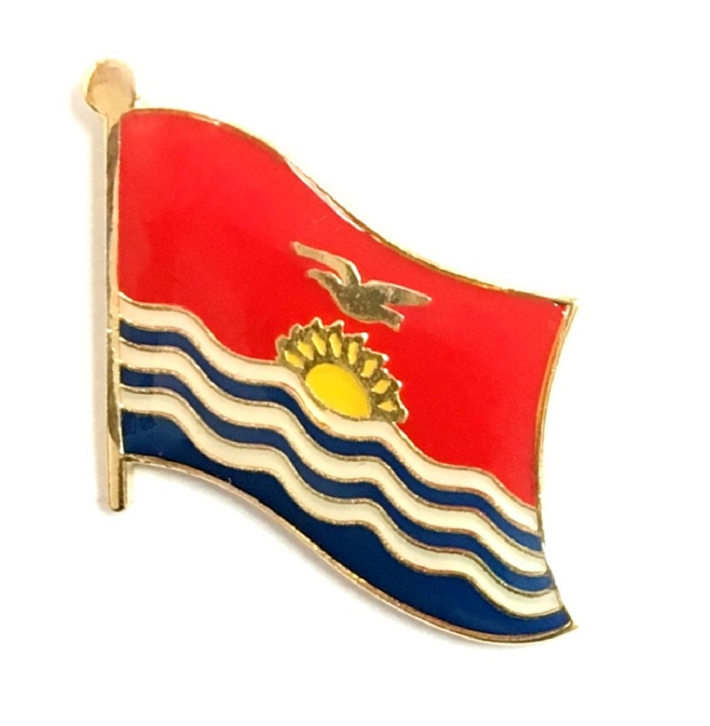 Kiribati flag pin measures approximately 1 inch; x 3/4 inch; or 24 mm x 16 mm and has an all metal lacquered design with clutch pin.