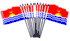 These Kiribati polyester table flags are great for special events, parades and party decorations. They are priced less than the top quality rayon desk flags and are sold only in packs of 12 per order unit. Each Kiribati miniature flag measures 4″x6″ and is attached with a pole hem to a 10″ black plastic staff with a black spear top.