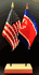 Elevate your workspace with our North Korea and American miniature flag desk set! These silk-like rayon flags, measuring 4x6 inch and are attached to a 10 inch black plastic staff and finished with a gold spear top. Perfect for office, classroom, or table decor. Each set comes with a 4 inch long white flag stand for added display options.